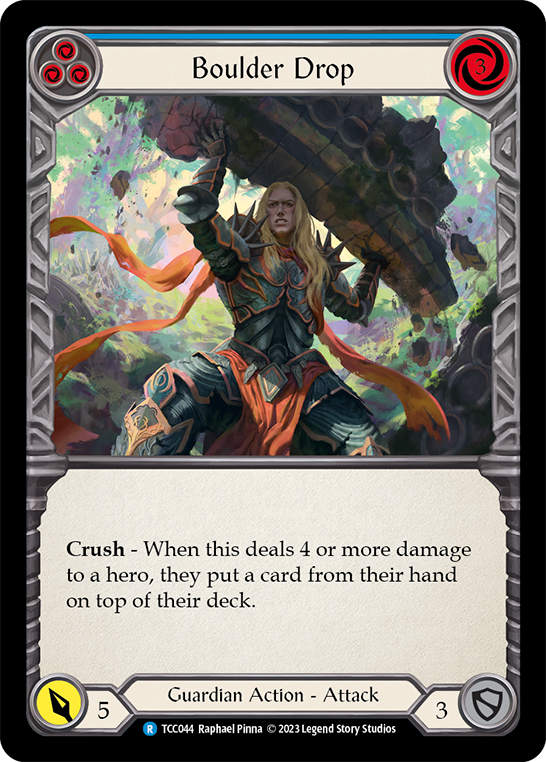 Crush - When this deals 4 or more damage to a hero, they put a card from their hand on top of their deck.
